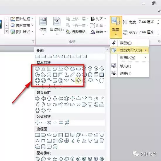 然后找到“剪裁”下的“剪裁成任意形状”。