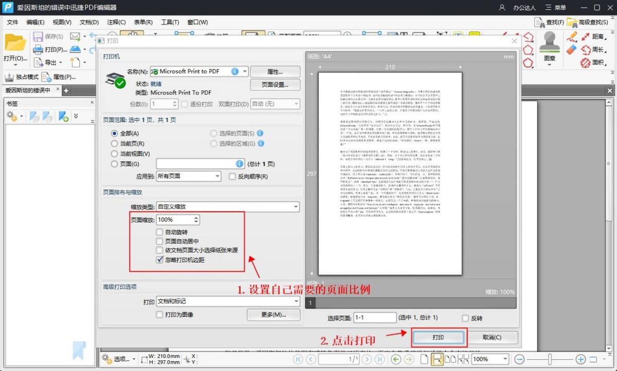 在页面缩放中设置自己需要的页面比例,随即点击打印即可。