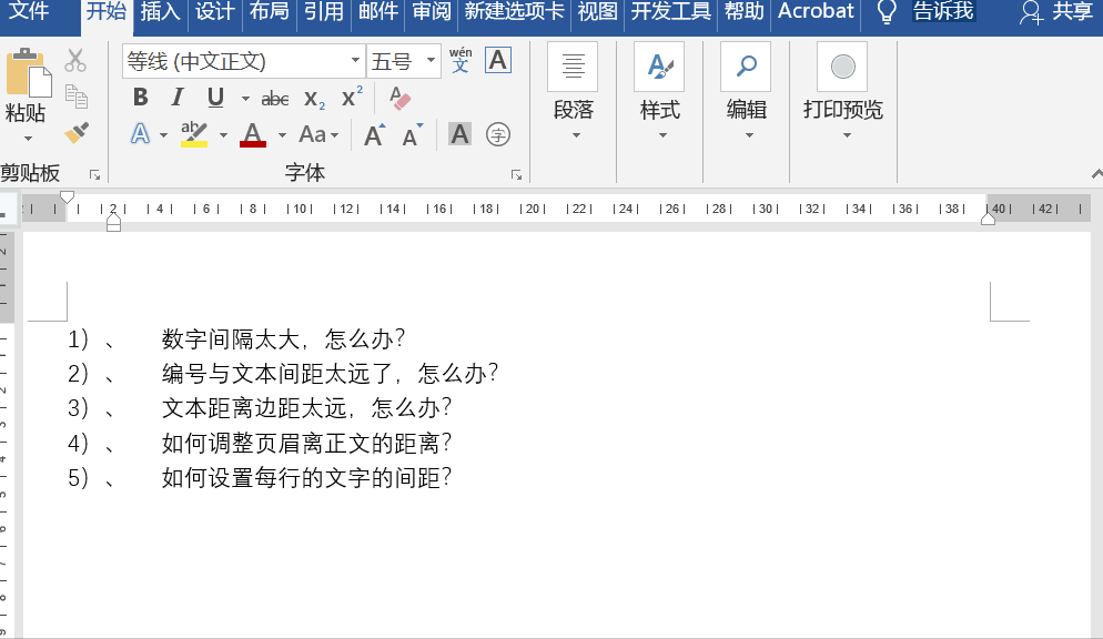 遇到数字之间的间距太大,可以选中内容,点击开始——字体——更改为大小写——半角即可。