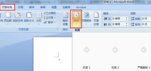 word2007是点击菜单栏上面的“页面布局---水印”,如图所示: