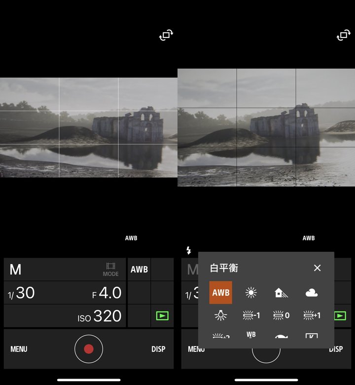 用户在当前界面里可以实时预览相机取景画面,会有卡顿。可供调节的参数有光圈、快门速度、ISO 值、白平衡、连拍和定时,若能加上触屏对焦就近乎完美了(在 A6400 上,这部分功能暂时缺失)。
