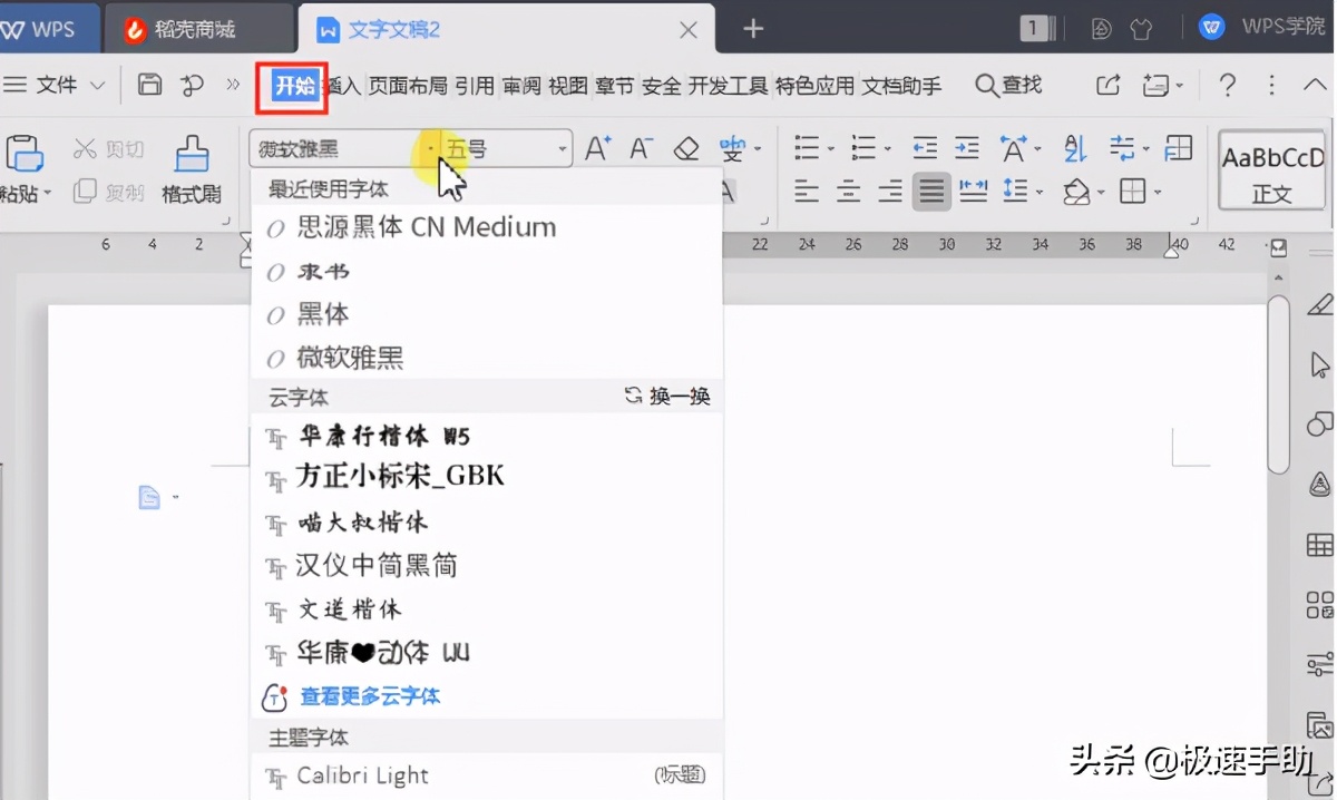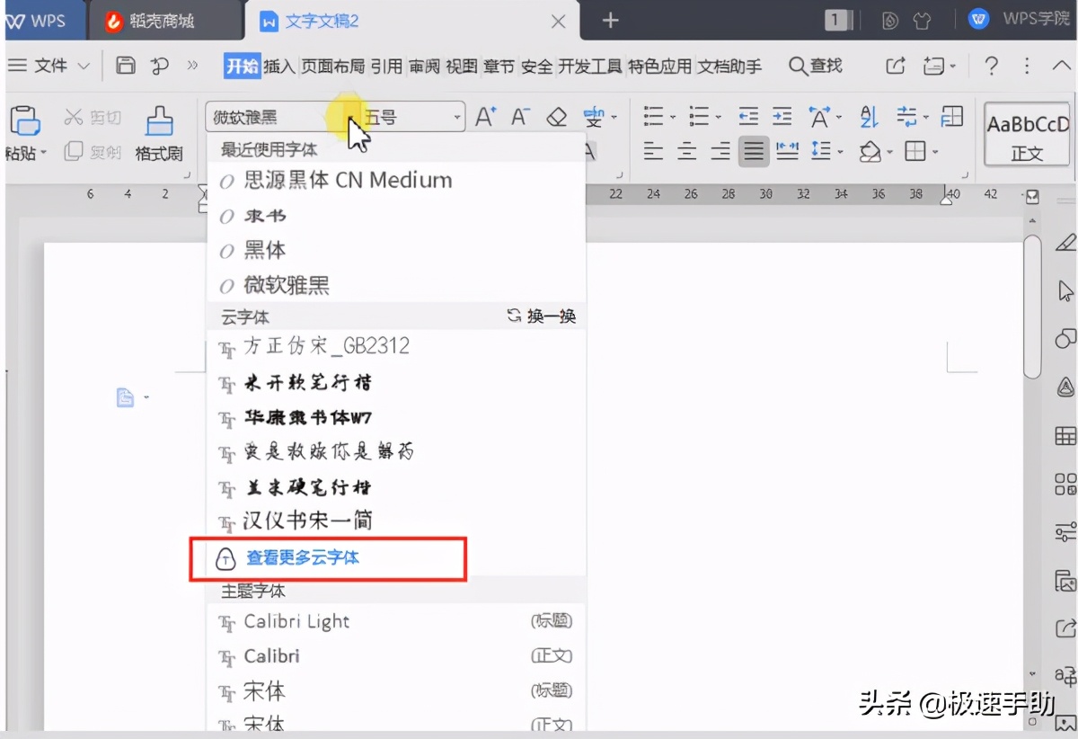 第二步,在字体选择处的下拉菜单中,点击【查看更多云字体】。