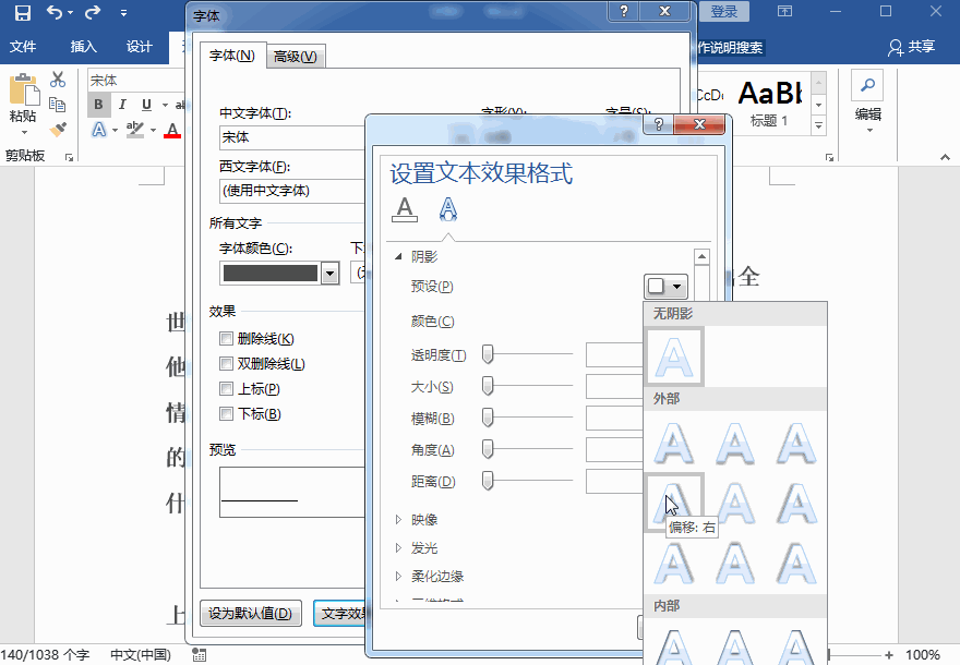 以上就是设置Word字体阴影的两种方法,两种方法使用起来都很简单的,大家都学会了吗?记得点击收藏哦。希望这两种方法都能够帮助到大家。