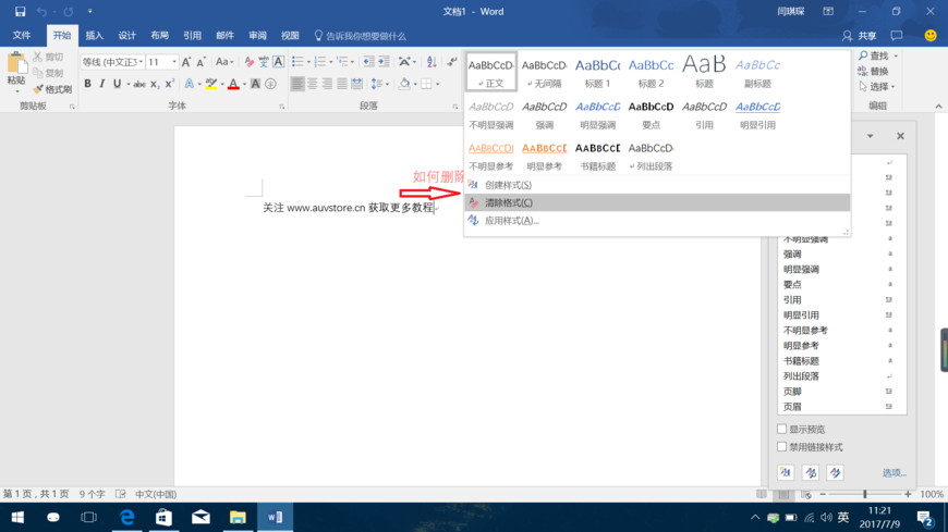 步骤二、进入【开始】选项卡,点击【样式】旁边的下拉按钮,然后在弹出的下拉选项中选择【清除格式】即可轻松搞定。