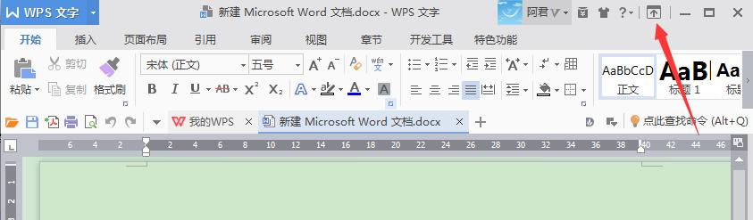 2、打开文档之后,现在菜单栏都是显示的,想要隐藏菜单栏,我们只需要选择右上方的隐藏功能区。点击之后,就能够将WPS文字菜单栏给隐藏起来。