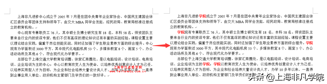 将文档中的“中心”替换为“学院”字体为红色,加粗。