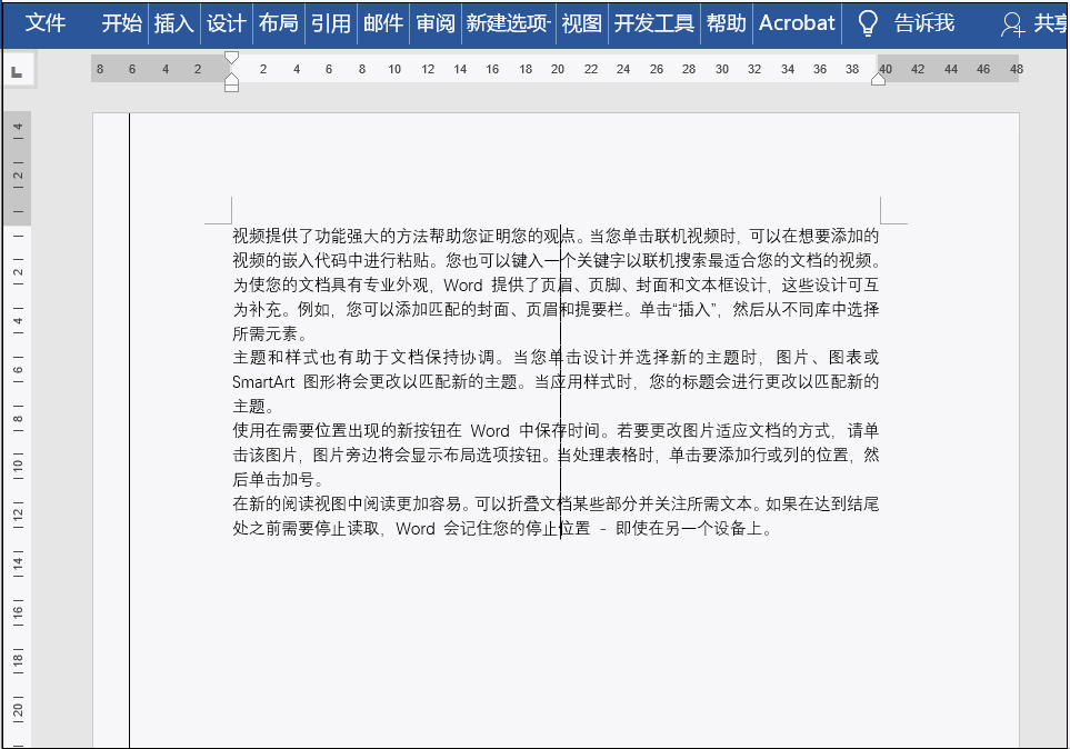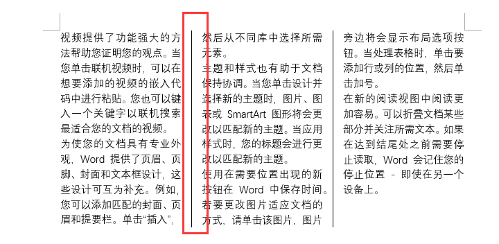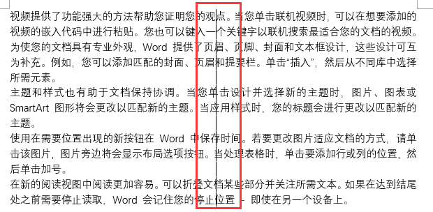 该竖线是由于分栏产生,可以选中文本,点击布局——页面设置——栏——更多栏,取消分割线复选框。