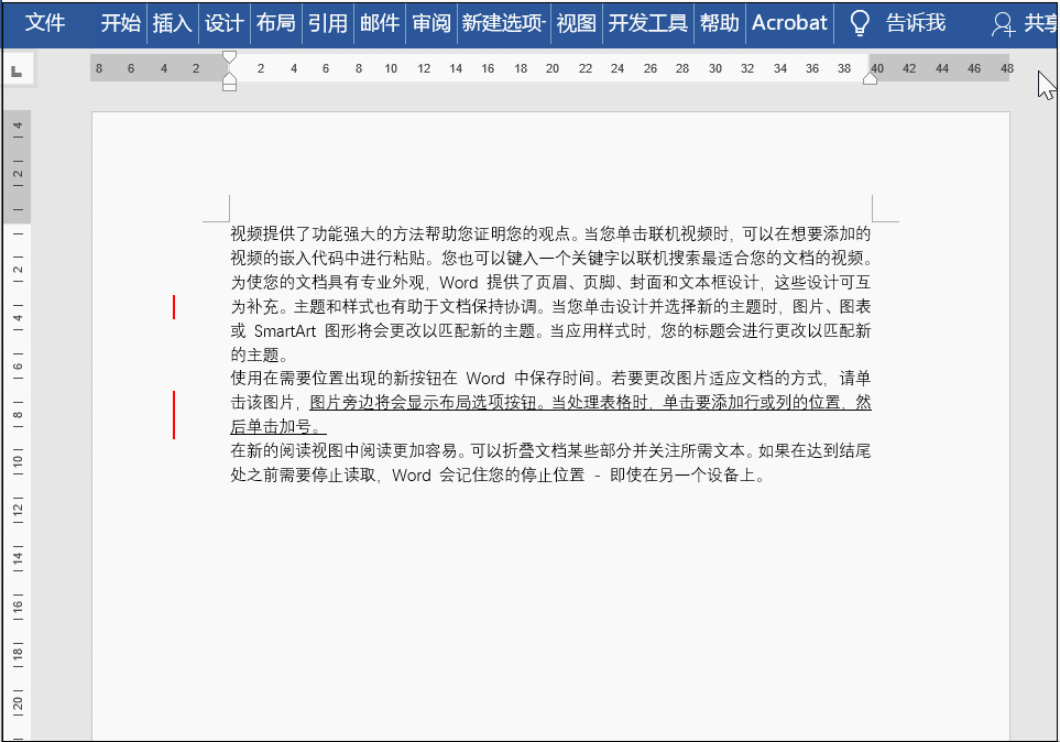 2、利用表格产生的竖线,可以直接选中表格,按删除键或者选中表格,点击开始——段落——边框——无边框即可。