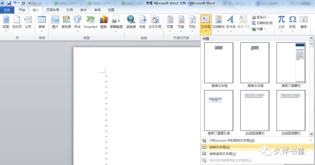 Word制作名片步骤1:启动Word 2013并创建一个新文档,在“插入”选项卡中单击“文本框”按钮,在展开的下拉列表中选择“绘制文本框”选项,如图1所示。