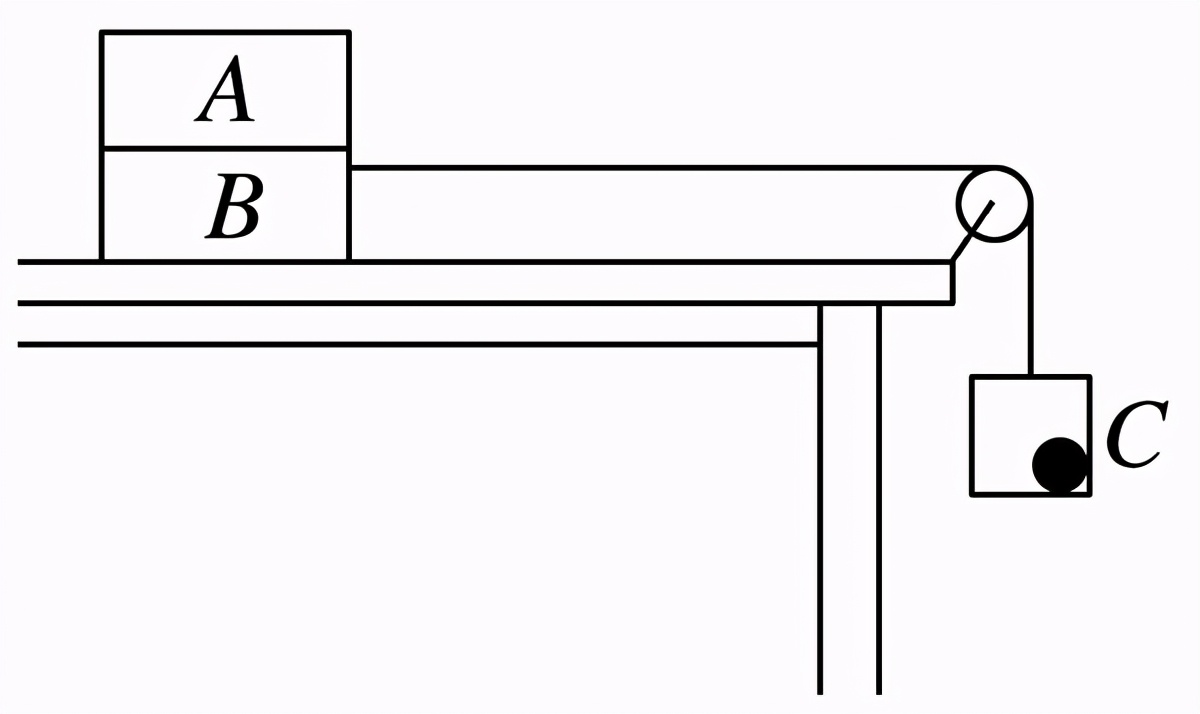 6.如图所示,两个相同的物体A、B叠在一起放在粗糙的水平桌面上,连在物体B上的轻绳通过定滑轮与空箱C相连,箱内放有一小球与箱内壁右侧接触,整个系统处于静止状态.已知A、B的质量均为m,C的质量为M,小球的质量为m0,物体B与桌面的动摩擦因数为μ,重力加速度为g,不计滑轮摩擦和空气阻力,下列说法中正确的是( )