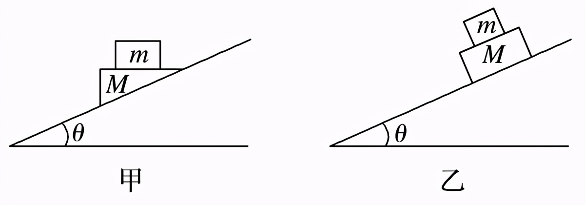 5.(多选)如图甲、乙所示,倾角为θ的粗糙斜面上放置一滑块M,在滑块M上放置一个质量为m的物块,M和m相对静止,一起沿斜面匀加速下滑,斜面保持静止,下列说法正确的是( )