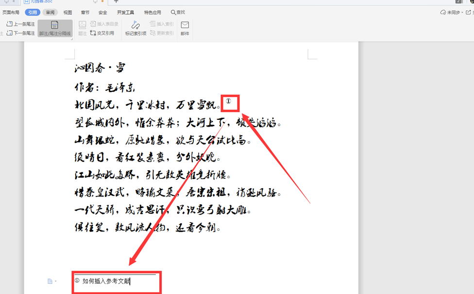 我们依法进行第二次注释,这样在本文档中就出现了两个插入参考文献了: