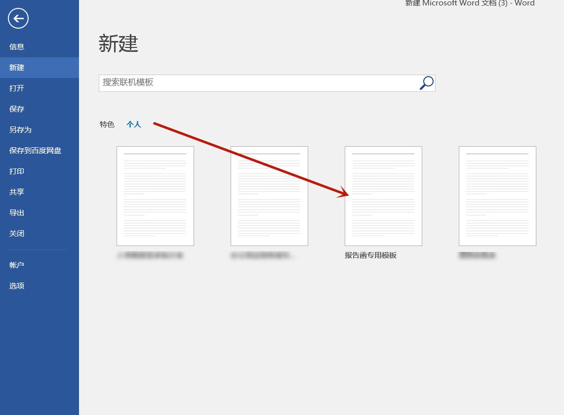 第2步:在右侧点击“个人”选项,就可以找到之前保存的模板。点击即可打开使用。