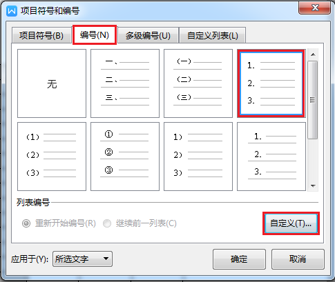 选择自定义编号