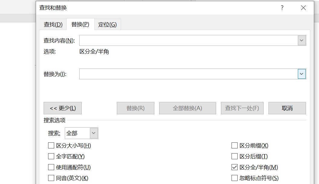 步骤1:快捷键【Ctrl+H】,打开【替换】对话框。