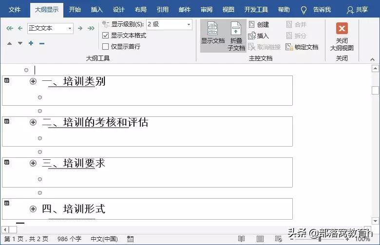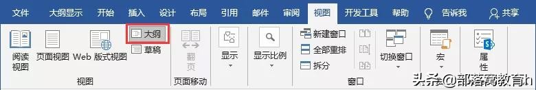 步骤二:点击【视图】-【大纲】按钮,进入大纲视图。