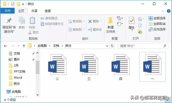 步骤五:另存当前Word文档,文档即拆分完毕,在电脑中打开存储文件夹即可查看拆分的子文档。