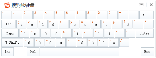这时可以看到出现标有各种汉语拼音声调的软键盘,即可通过软键盘输入你所需要的拼音声调。