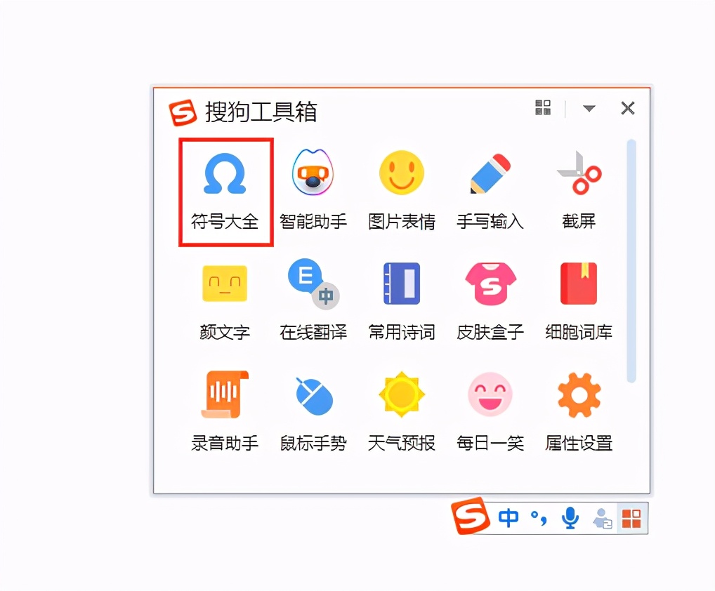 2.在打开的“搜狗工具箱”窗口中,单击列表中的“符号大全”。