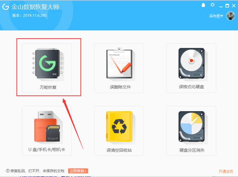 这时候会弹出一个数据恢复大师的窗口,我们可以点击万能恢复,这样就全部恢复了: