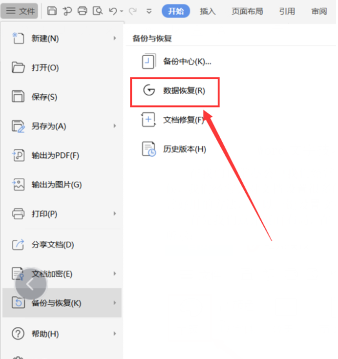 在下拉列表中,我们点击备份与恢复,在右侧的列表中我们可以看到有4个选项,具体操作如下图所示: