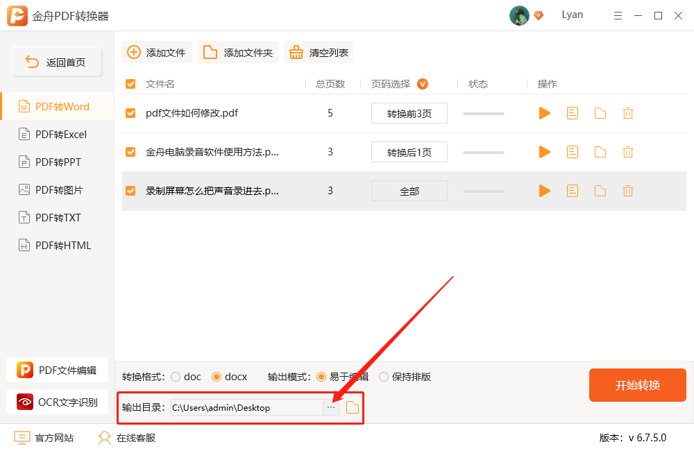 六、输出目录可以自定义选择位置,默认是电脑桌面上;