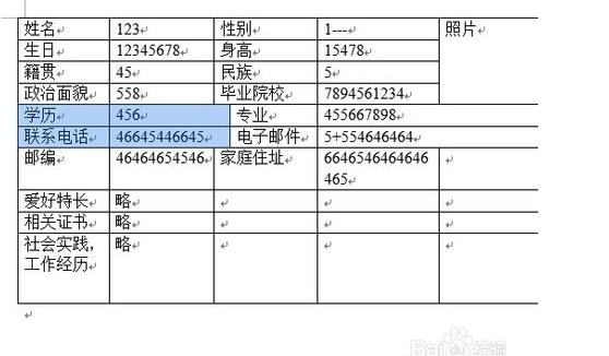 3、填充表格。先不用排版,在表格里按照顺序填写就行。