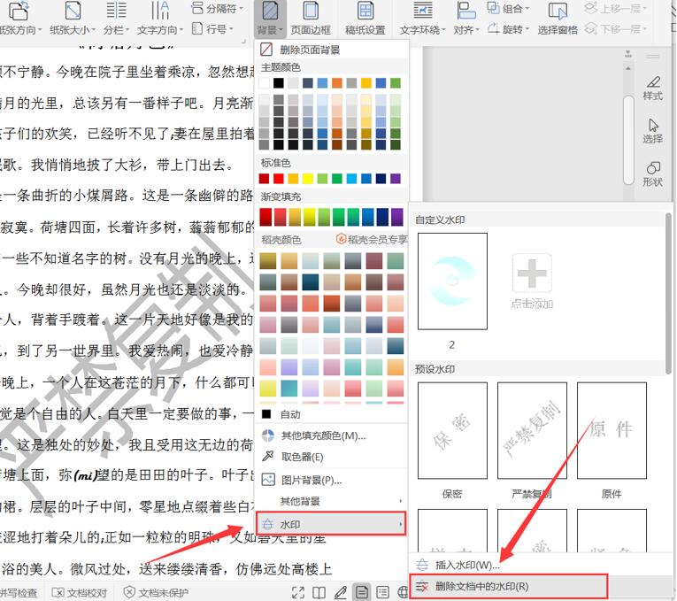 我们在网上下载文档使用时,为了保护文档有的模板中会带有明显的水印很是影响阅读,那么如何去除Word文档中的水印呢?今天我们一起来学习下如何去除文档水印。