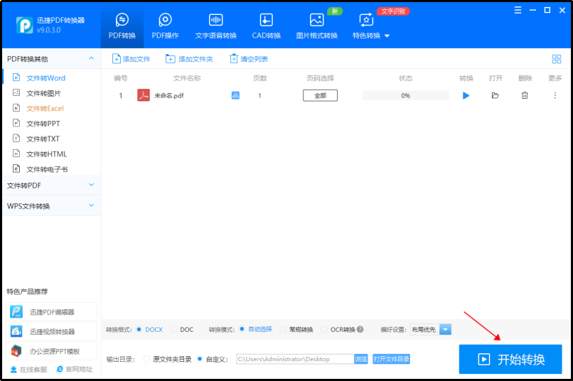 方法一:迅捷PDF转换器