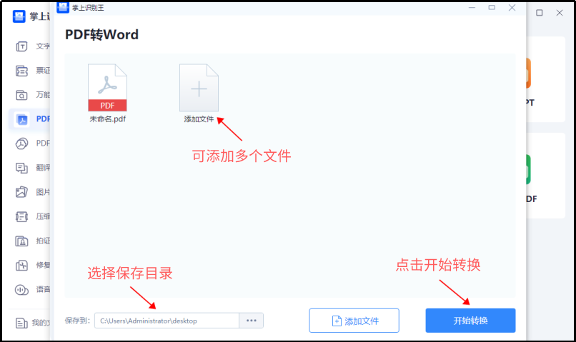 第三步:添加好文件后,我们再选择一下文件的保存目录,如果觉得麻烦可以设置一个专门的文件夹用于保存此类文档。确定好文件夹以后就不用再设置保存目录了。设置完成后,点击开始转换,就大功告成啦,操作起来其实挺快的,大家可以试一试。