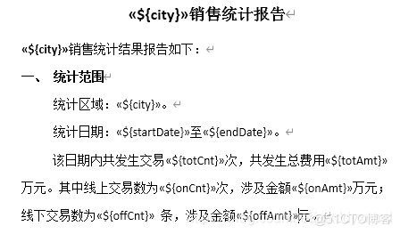 2.FreeMarker模板下的变量表达式,比如用${city}替换Word示例模板中的北京市。