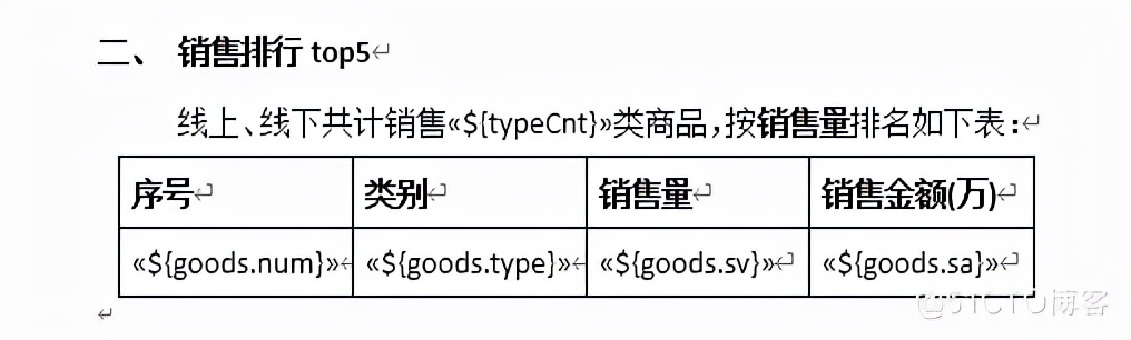 给表格数据添加序号是通过后台代码生成的,比如上面的"goods1.setNum(1)"这段代码,其实也可以在Word模板中设置对应的域变量来实现序号的填充。