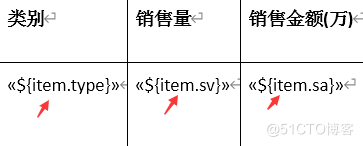 表格数据的处理其实和上面对文本内容的处理是类似的,只不过要在Word模板中加上集合的变量,Java代码中也要有对集合进行特对的处理(这个在后面的代码展示部分会说)。