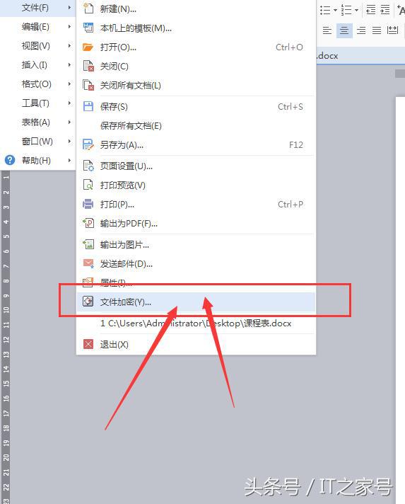 第二步,按Ctrl+s,进行保存,然后找文件,文件加密。如下图。