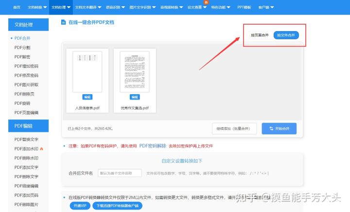 如果你的文件不是很大,也不是经常需要进行文档的合并,这里也给大家安利一个超级好用的网站,里面功能非常多!