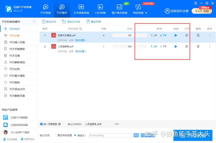 不管是按页面合并还是按文件合并,都可以随意调节文档的位置