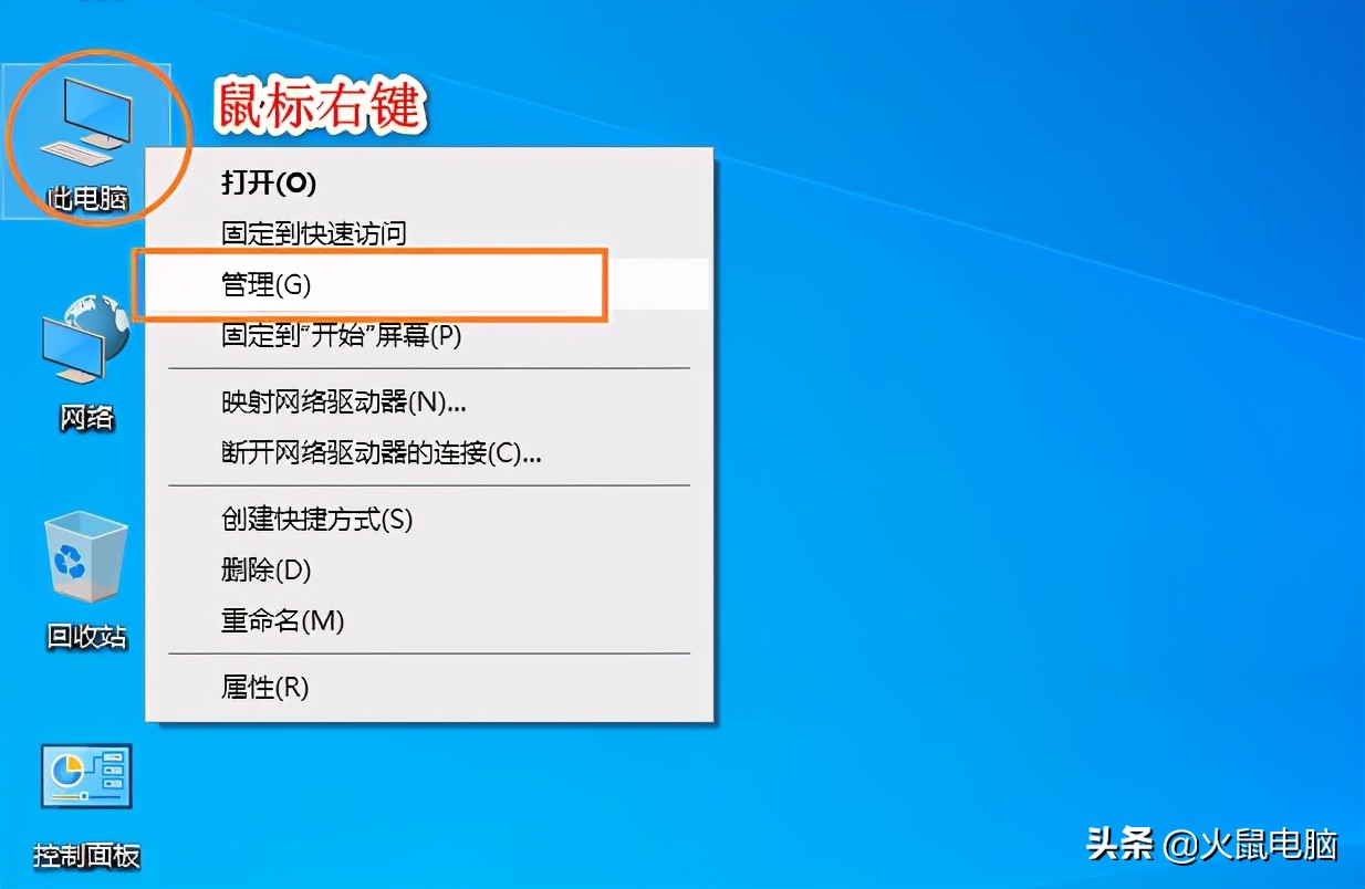 •此电脑 -> 鼠标右键 -> 管理 -> 磁盘管理
