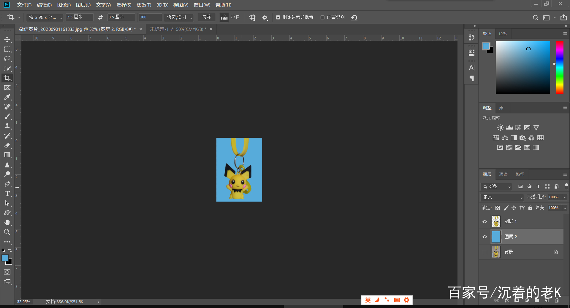得到1寸照片,将照片图层和蓝色背景图层选中按ctrl+E合并图层