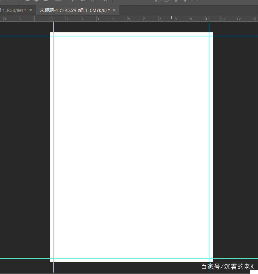 分别选垂直,位置0.23厘米,水平0.23厘米,垂直10.5-0.23=10.27厘米,水平14.8-0.23=14.57厘米建立四条参考线,效果如图