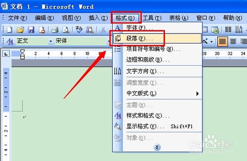 1选择“格式”里的“段落”,如果已经有段落了,可以选中你要首行缩进的段落: