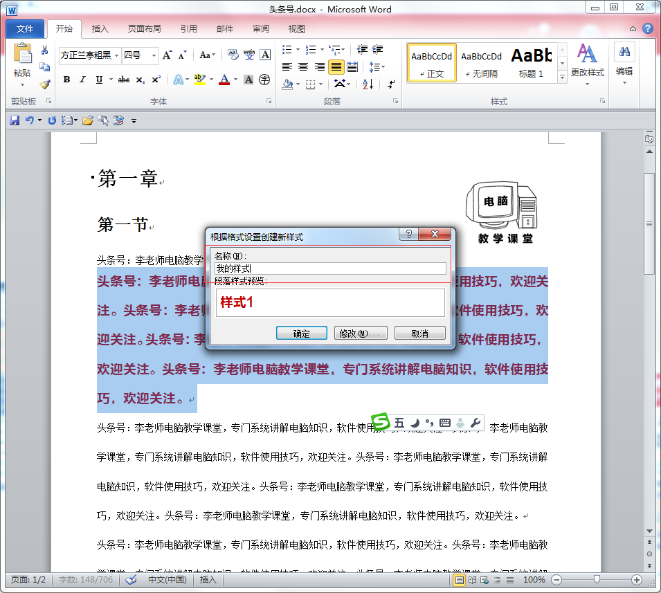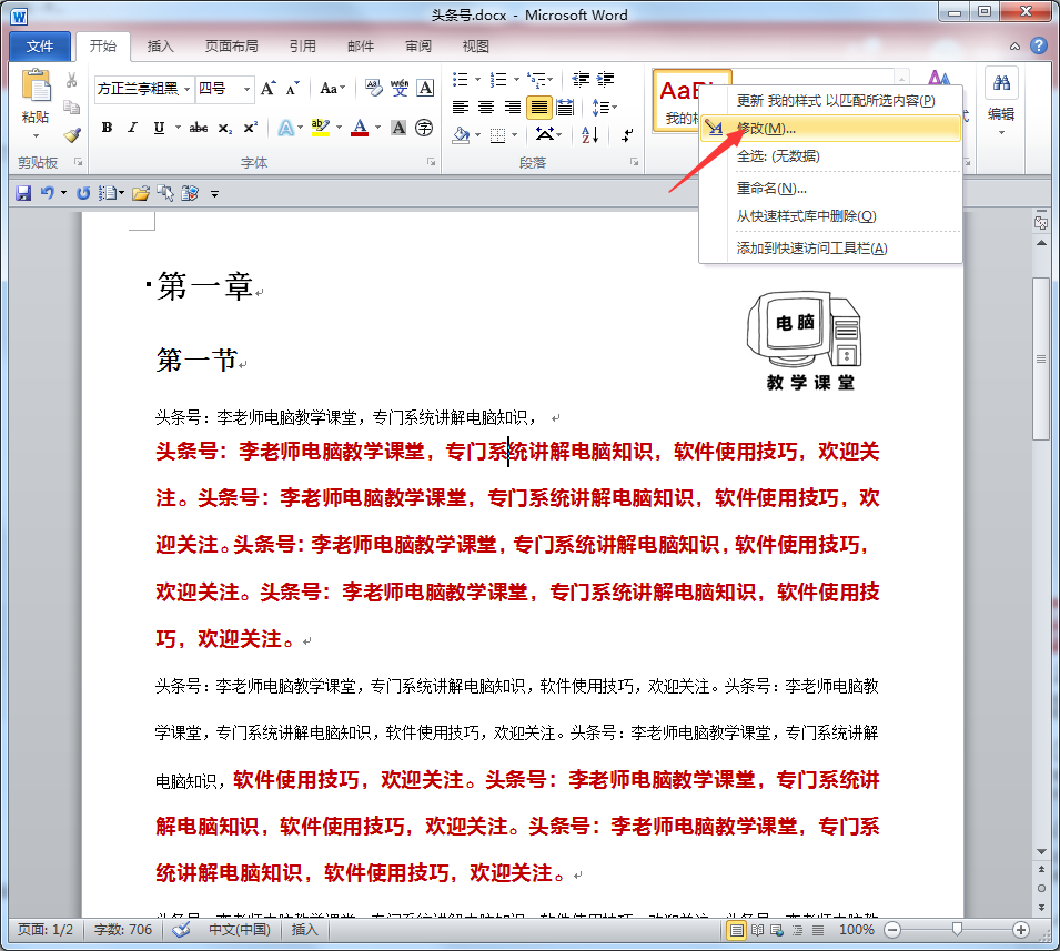 如果我现在对调整好的文字样式不满意,我只要改样式就可以了,所有应用了同一样式的文字自动更新。