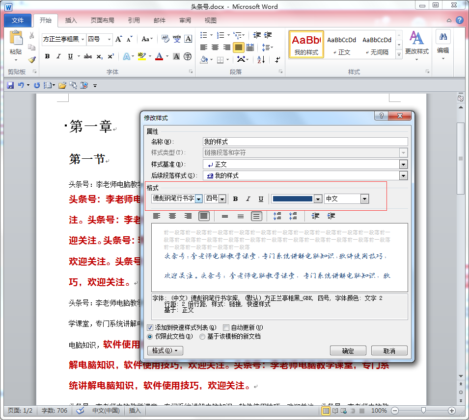 确定后,两段文字同时改变样式: