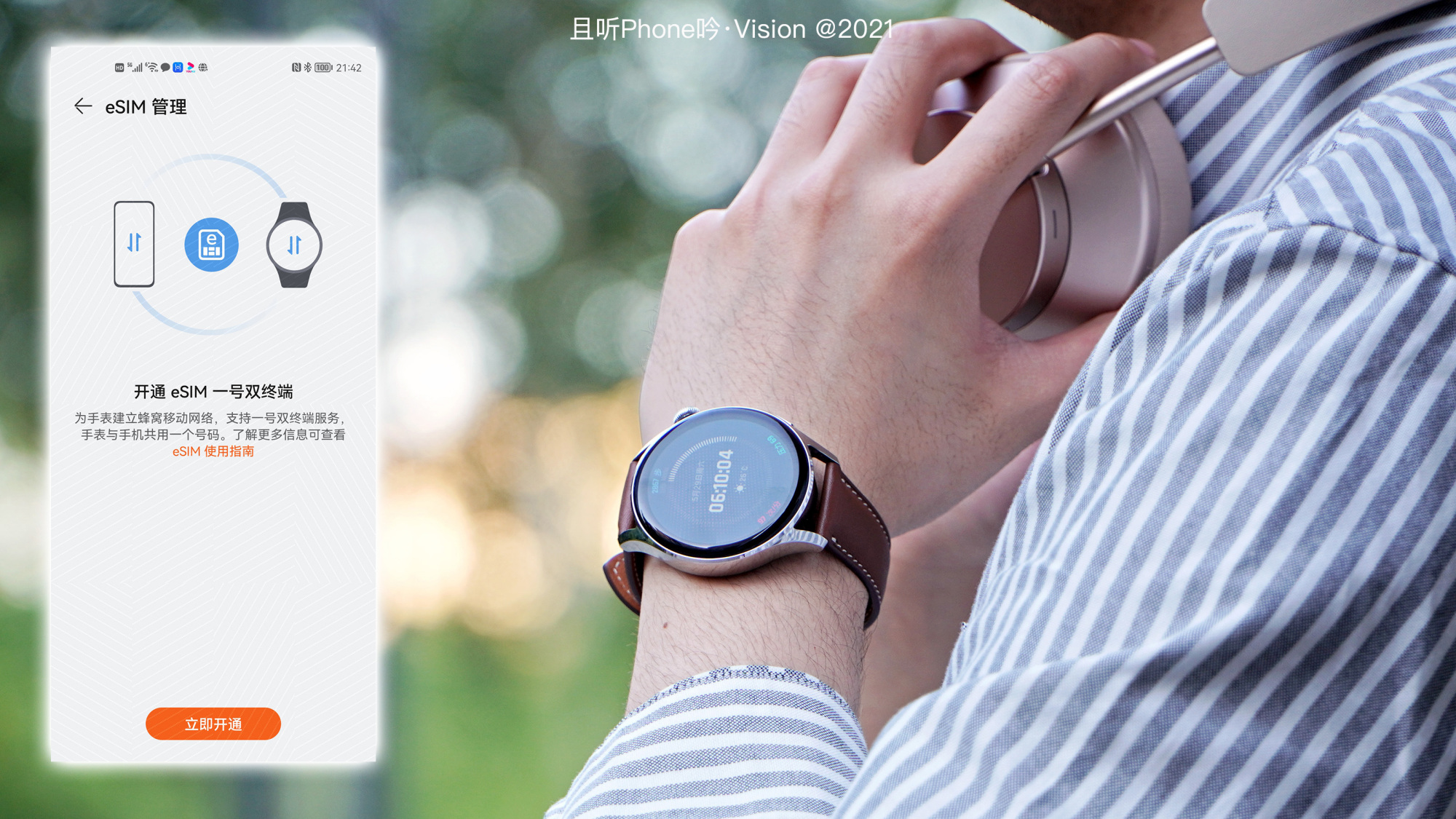 通过运动健康APP里的eSIM管理,便可为配对的华为WATCH 3开通一号双终端,即:手表和手机共用一个号码,即使没有手机也能用手表接听电话(支持外放、或者连接耳机接听);特别强调一点,华为WATCH 3同样支持畅连通话的呼叫转移,能够把手表端的视频投到智慧屏上。除此之外,华为WATCH 3还支持蜂窝数据、以及连接Wi-Fi功能,俨然一副“腕上手机”的模样。