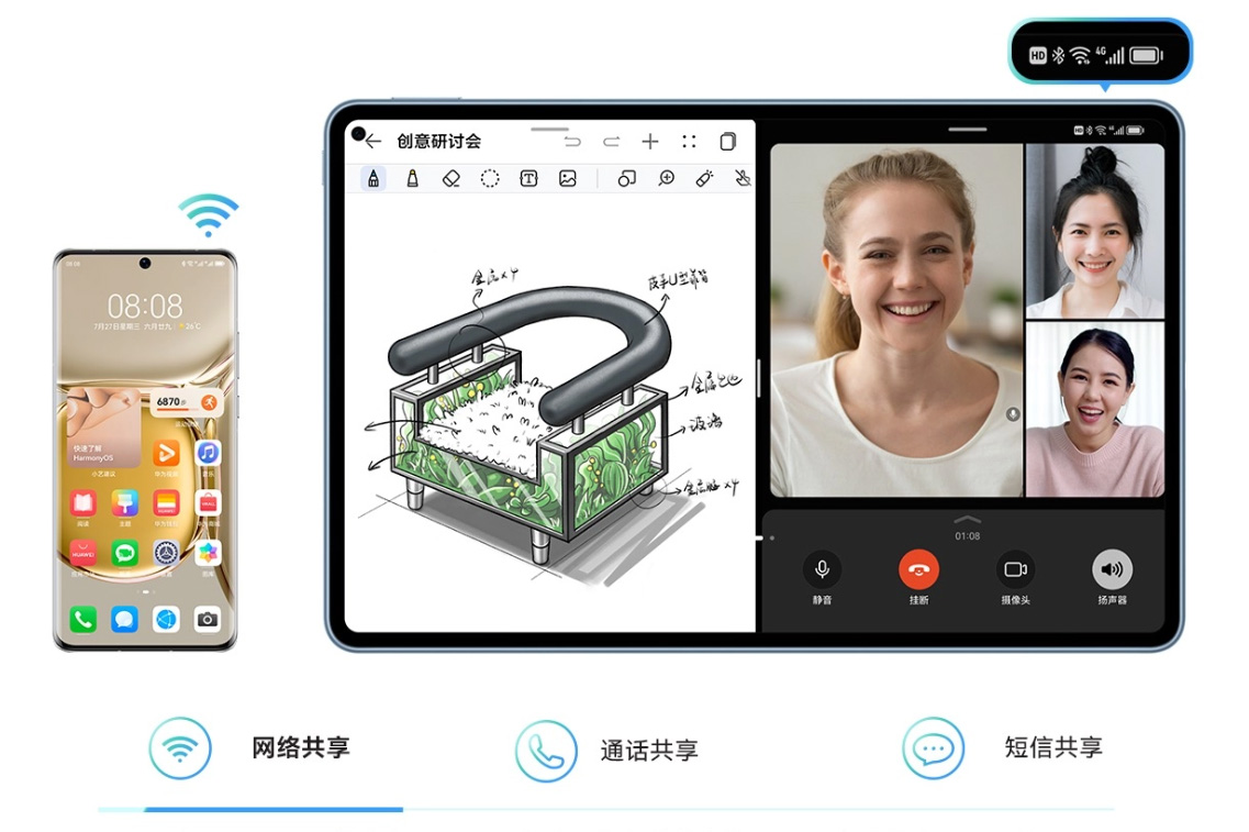 此外,手机的移动网络可以直接共享给平板,这样就不需要平板增加LTE版了,手机有网,平板就有网。