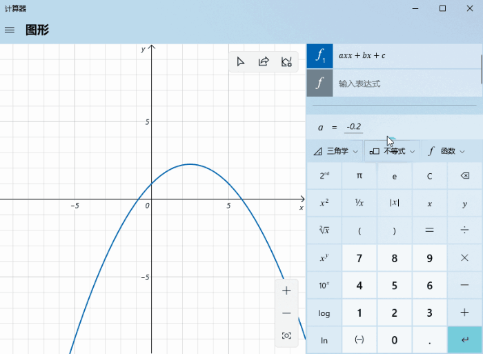 Win10 21H1的计算器增加了“图形”模式,这也是继v2004预览版后该功能的首次回归。使用时,只要在窗口右侧输入要求解的方程式,拖动滑杆,我们即可在图形模式下查看该方程不同取值下的求解变化。