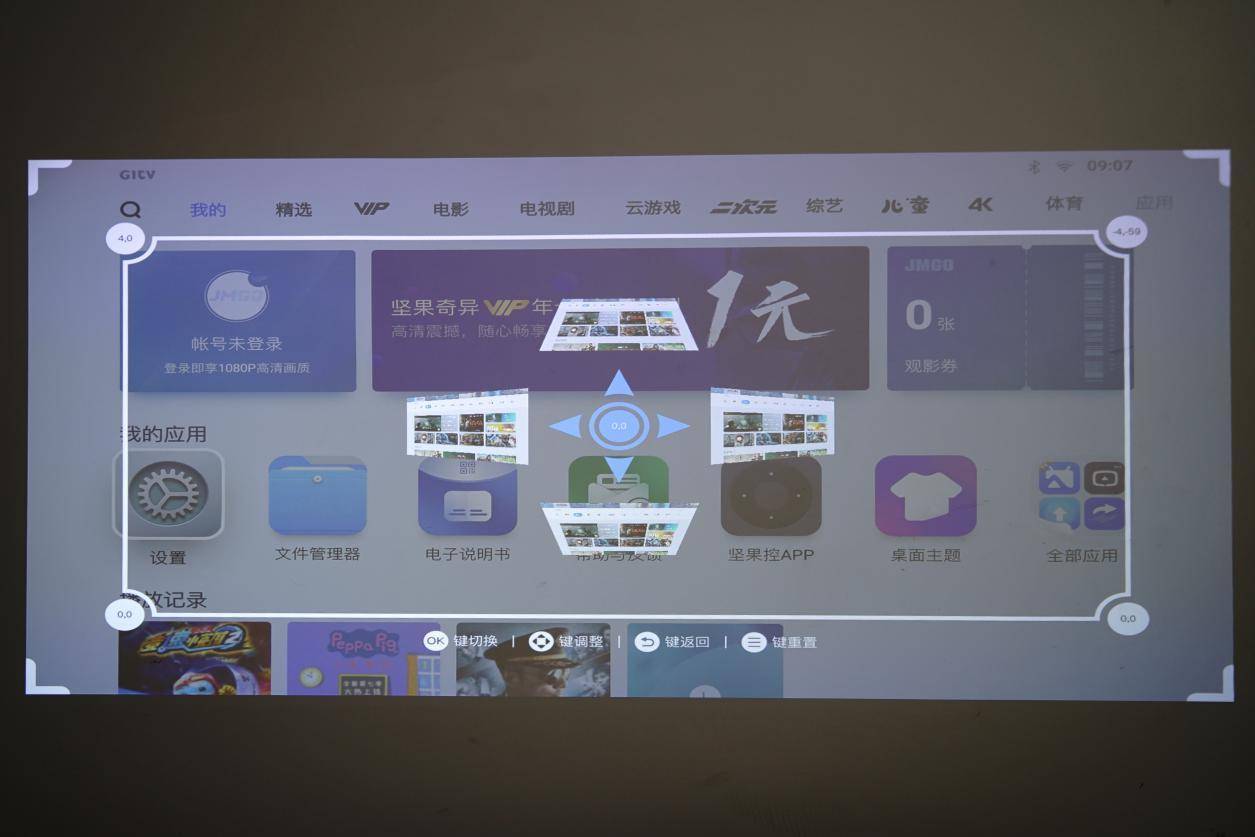 系统和配置是一款智能投影仪的关键坐在,系统决定了产品的宽容度,配置却决定了产品的高度。坚果智能投影一直采用的是基于安卓定制的JmGO OS 3.0智能系统,经过了不断地更新迭代,目前已经非常成熟了。