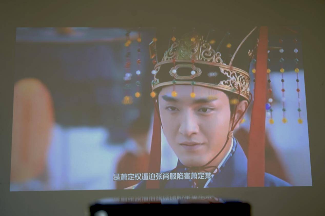 而到了晚上画面的亮度、清晰度会有明显地提升,如下图是在关闭光源的情况下的观影表现,我们可以更清晰、色彩饱和、高亮度的画面,这应该是最佳观影的状态,犹如在电影院观影一样。