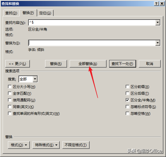 将光标置于【替换为】输入栏中,点击下方格式中的【字体】