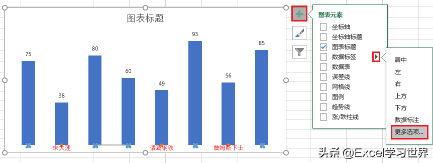 7. 选中柱形 --> 点击图表右上角的“+”--> 勾选“数据标签”