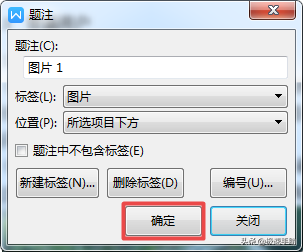 第六步,回到【题注】设置窗口后,继续点击【确定】按钮。